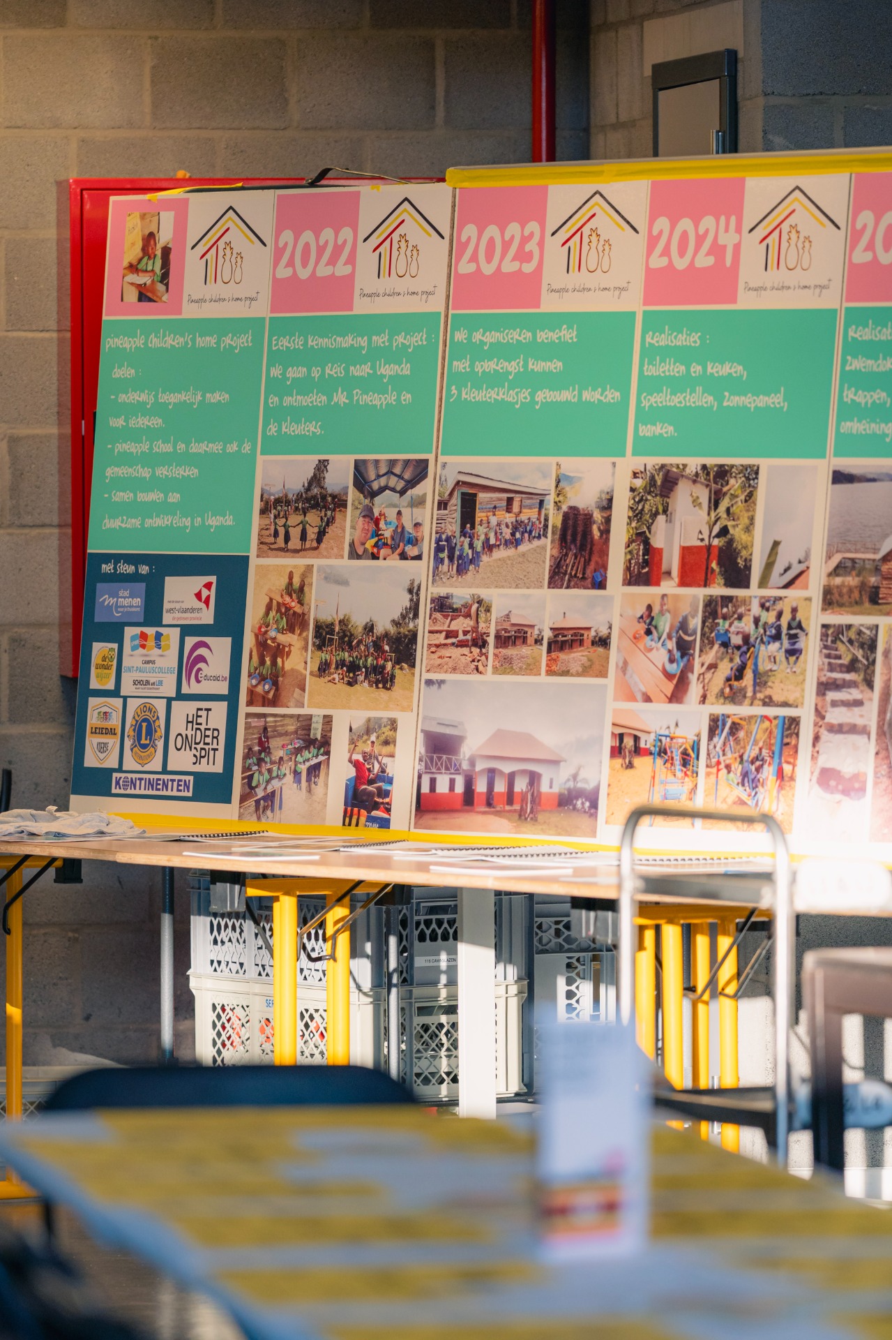 After our summer trip in Uganda in 2022, we wanted to do something for the children at Lake Bunynoyi. We want to help Ananïas with the development of a warm kindergarten where children have every opportunity and can grow = Pineapple Children's Home Project .21 maart 2026 : een geslaagd benefiet !